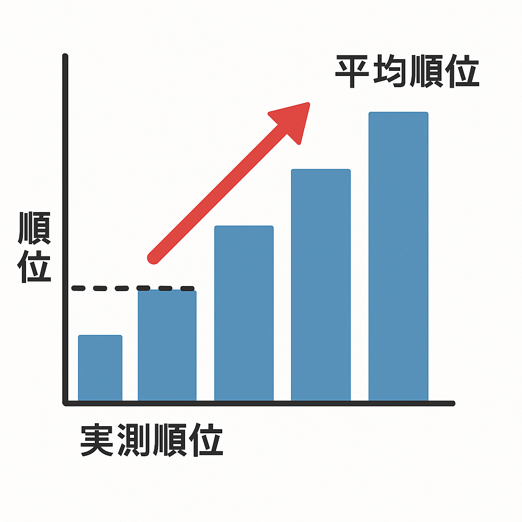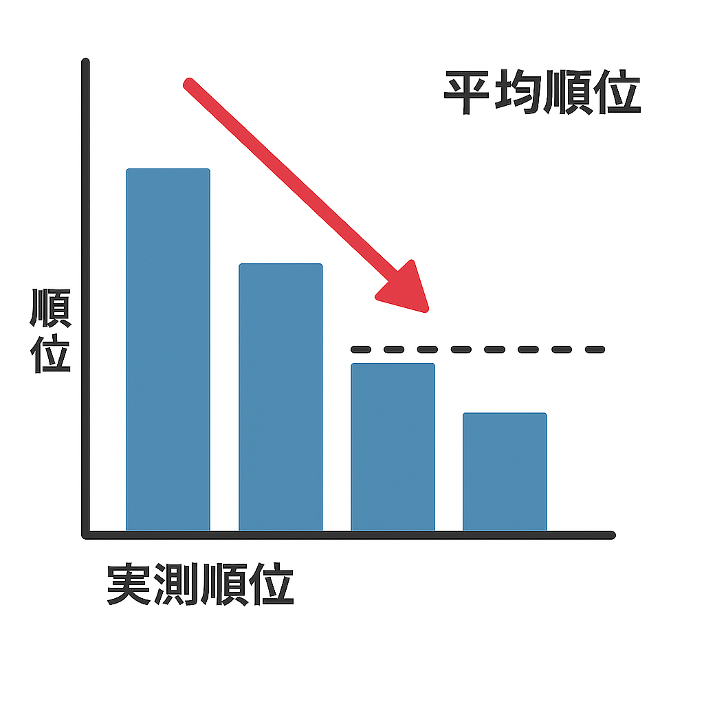 想定順位(平均順位)よりも下位に表示されている状態です。